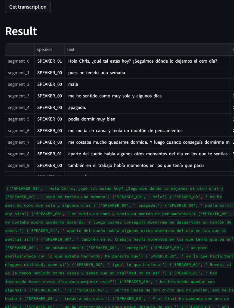 - Transcription Accuracy: Thanks to Whisper, conversations are transcribed with high accuracy. This feature is essential for therapists who rely on detailed session notes.